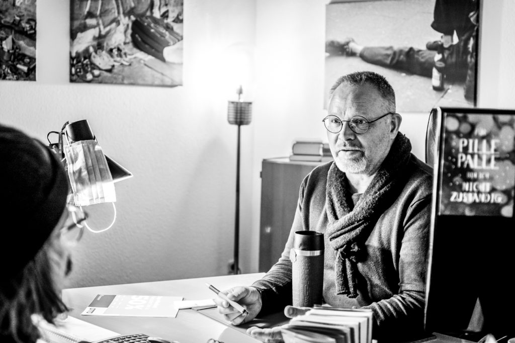 In den eigenen vier Wänden und unter Einfluss des alltäglichen Trotts kann die Situation wohnungs- und obdachloser Menschen schnell mal vergessen werden. In Klaus Büro hängen deshalb Bilder aus seiner Zeit als Streetworker, die ihn in seinem leitenden Bürojob an die Lebensrealität seiner Klient*innen erinnern sollen. Letztendlich liegt es aber auch an der Gesellschaft, dass wir prekarisierte Gruppen wie Wohnungs- und Obdachlose nicht weiterhin stigmatisieren. Klaus rät dazu, sich bei der nächsten Begegnung nach Möglichkeit ein wenig mehr Zeit zu nehmen, um in Kontakt zu treten und sich auf die Situation einzulassen. Falls ihr weiterführend unterstützen möchtet, sind Klaus und seine Kolleg*innen auf der Suche nach ehrenamtlicher Unterstützung im Betrieb des Café Ludwig [MAIL VON KLAUS]. Darüberhinaus sind monetäre Spenden für Speisen und Getränke immer willkommen. Wenn ihr mehr über die Arbeit der Zentralen Beratungsstelle am Helene-Weber-Platz erfahren wollt, schaut mal hier [HOMEPAGE DER DIAKONIE] vorbei.
