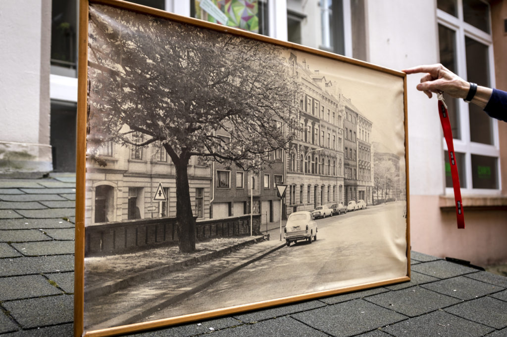 Der „Reproduktionsbetrieb Friedrich Brockhaus“ wurde 1900 von Ekkehards Großvater Friedrich Brockhaus in der ehemaligen Bleichstraße gegründet. Anlässlich der Städtevereinigung von Elberfeld und Barmen und der damit einhergehenden Umstrukturierung der Infrastruktur, zog der Betrieb nach dem Ende des zweiten Weltkriegs 1946 in die Mirker Straße 39a. Im Vorderhaus, der Mirkerstraße 39 und 41 wohnten eine Vielzahl der Beschäftigten mit ihren Familien und die Familie Brockhaus. Ein Blick aus den Fenstern der Wohnungen offenbarten damals noch einen freien Blick auf die Treppenanlage, die als Hauptzugangsweg zum Mirker Bahnhof, der zur damaligen Zeit in vollem Betrieb war, fungierte. Tagtäglich nutzen die frisch-gebackenen Wuppertaler*innen sie, um zur Arbeit oder zurück nach Hause zu gelangen – mit der Bahn versteht sich, nicht mit dem Rad. So auch viele der Angestellten des Reproduktionsbetriebs, die sich in ihrem Arbeitsleben den Aufgaben der Druckvorstufe widmeten und zahlreiche Fotografien bearbeiteten, beschrifteten und komponierten. Nach über 100 Jahren fiel der Familienbetrieb aber letztendlich der Digitalisierung zum Opfer. Mit den heutigen technischen Mitteln können all die Arbeiten des Reproduktionsbetriebs digital am Computer durchgeführt werden. Was einst intensive Hand- und Kopfarbeit war, ist heute ein paar Klicks entfernt.