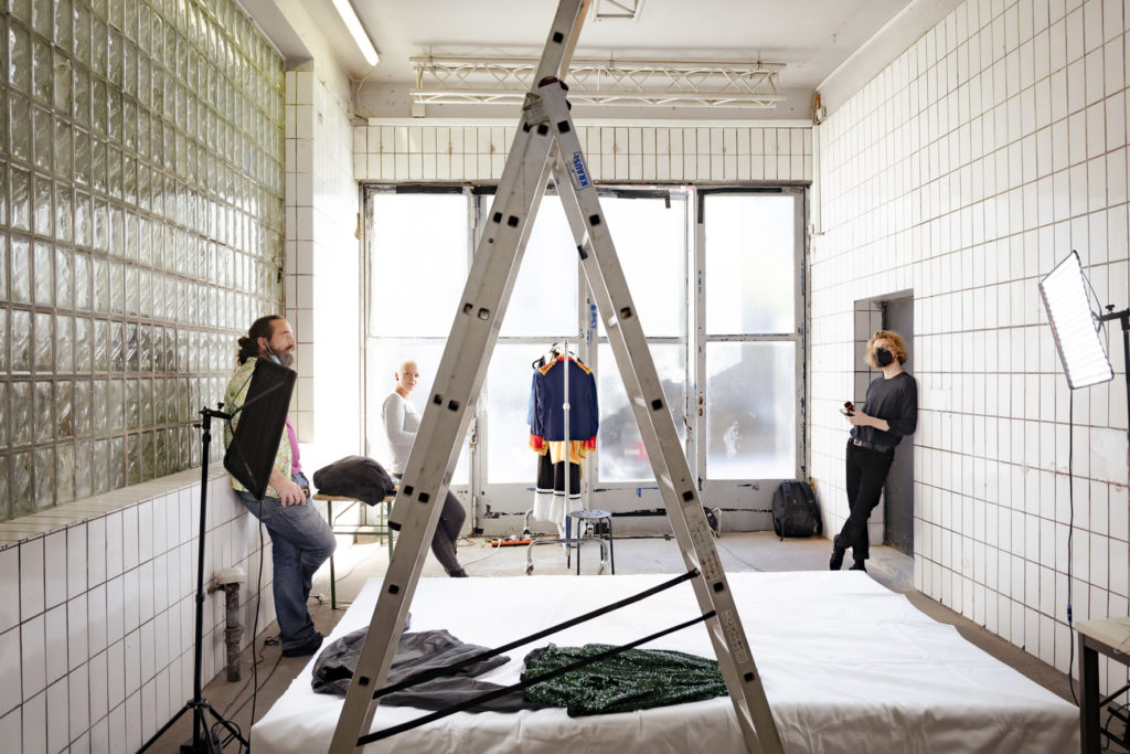 Aufbau des Sets in der ehemaligen Werkhalle | Foto von Wolf Sondermann