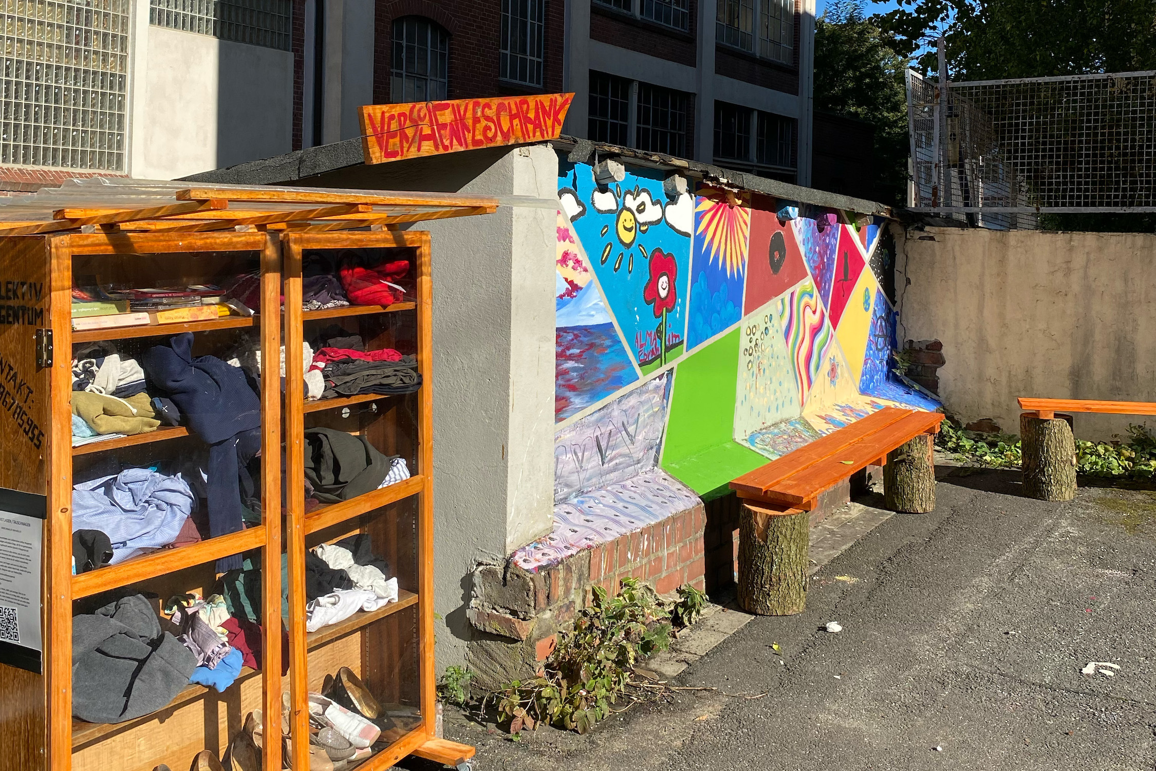 Wer in den letzten Monaten interessiert durch die Elberfelder Quartiere geschlendert ist, dem*der dürfte die Arbeit der Gruppe „Solidarischer Aufbau Wuppertal“ nicht entgangen sein. Bei den Wiesenwerken, vor dem AZ Gathe, in der Charlottenstraße und am LOCH stehen Schränke im öffentlichen Raum, die dazu einladen, Gegenstände hineinzulegen und andere herauszunehmen. Was auf den ersten Blick banal klingen mag, offenbart dabei weitaus tiefgreifendere Wirkungen als gedacht. Welche Konsequenzen erwachsen daraus, den öffentlichen Raum wahrhaftig als kollektiv selbstverwalteten Raum zu verstehen, der Solidarität und Handlung bedarf? Was passiert, wenn wir uns öffentlichen Raum „einfach“ aneignen, statt auf Bürokratie und Verwaltung zu vertrauen? All diese Fragen haben etwas mit dem Aktivismus der Gruppe „Solidarischer Aufbau Wuppertal“ zu tun, die für die sogenannten „Tauschwägen“ verantwortlich sind. In einem Interview haben wir mehr über Ihre Intentionen, ihre Schwierigkeiten und Visionen erfahren.