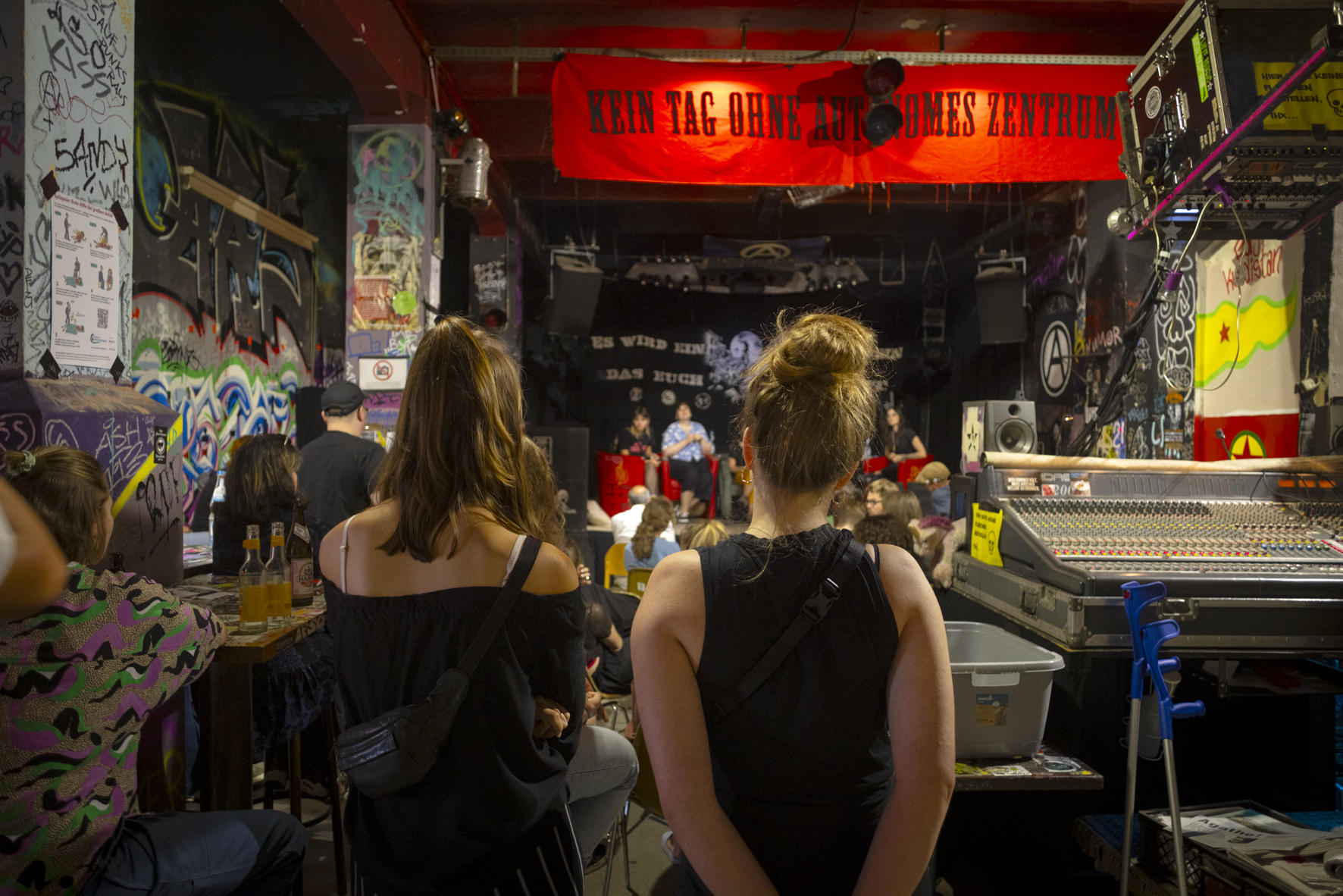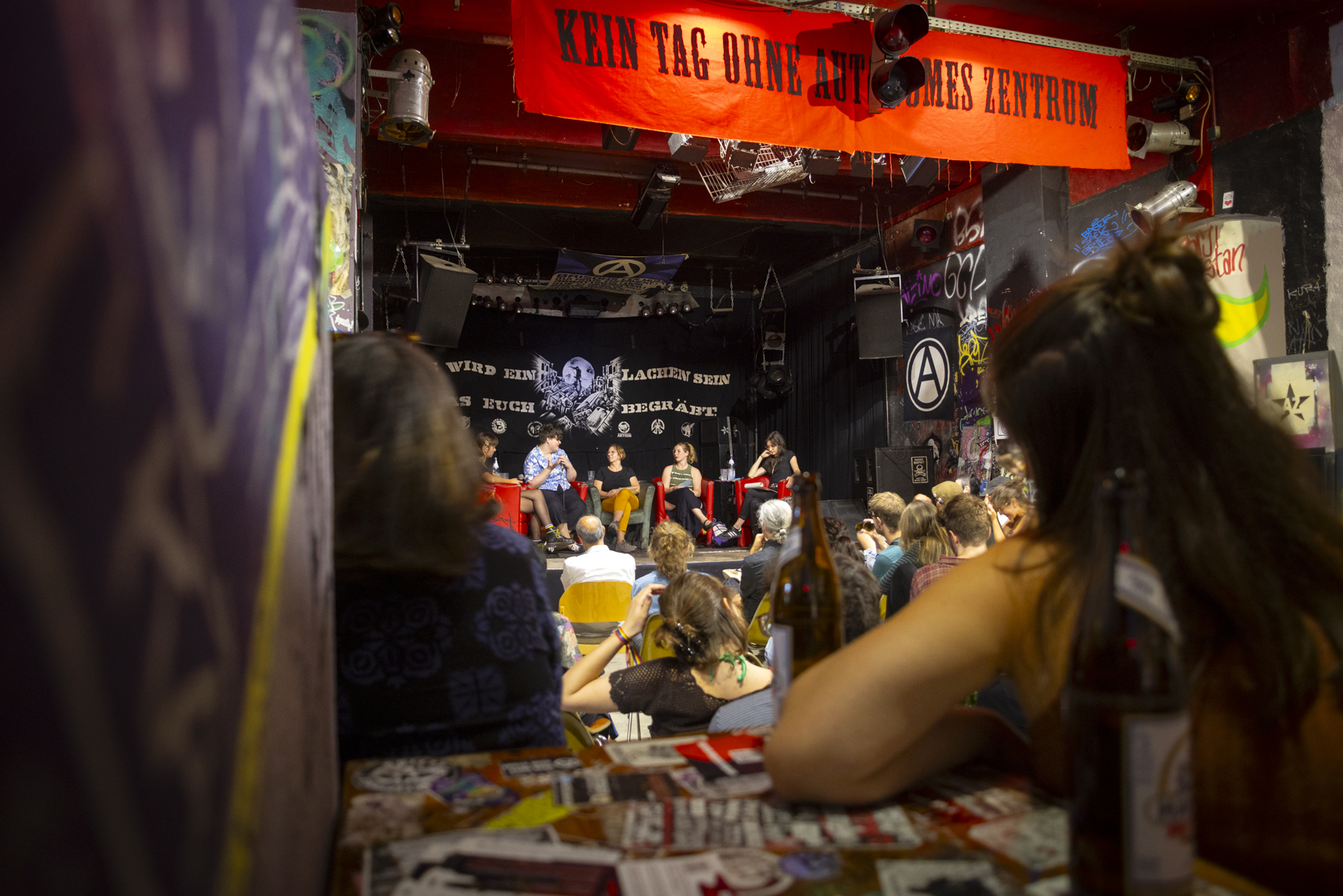 Wir leben in einem Patriarchat und es ist überall. Es begegnet uns auf offener Straße, im Berufsleben, im familiären Umfeld, in Statistiken, in der Medizin, in unserem Konsumverhalten, in den sozialen Medien, in den Gefängnissen und selbst im Grab. Einigen von uns bleiben davon verschont, andere hingegen kostet es ihr Leben. Was aber können wir dagegen tun? Die letzte Ausgabe von „Public Positions“ am 12.07. im Autonomen Zentrum widmete sich dieser vermeindlichen Leerstelle und warf die Frage auf, wie wir als Gesellschaft unseren Teil zum Empowerment von FLINTA*-Personen beitragen können. Rund 60 Interessierte besuchten die Podiumsdiskussion und auch wir waren mit dabei.