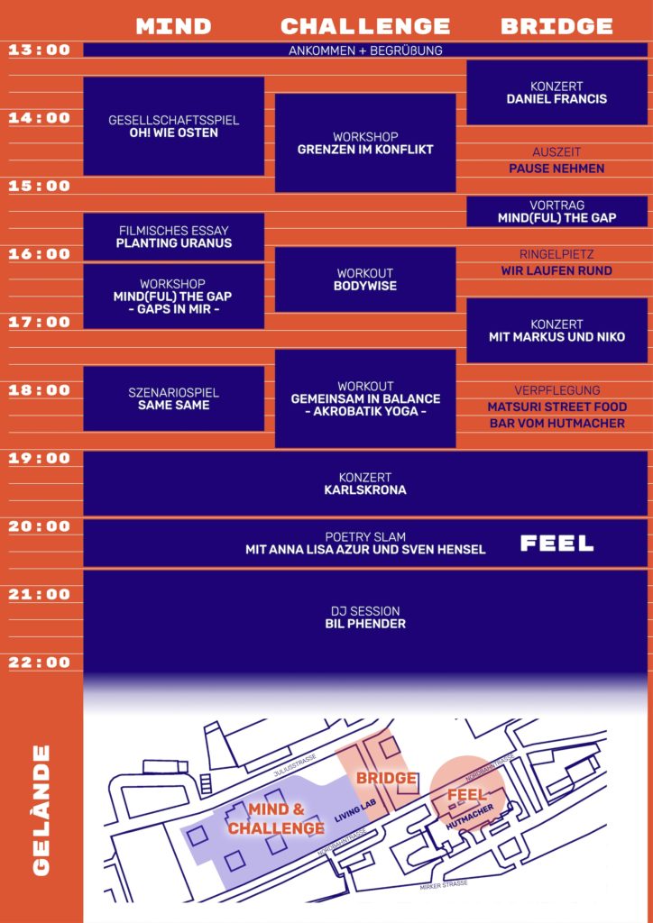 Falls auch ihr euch nach einem Ort sehnt, indem ihr kollektiv Kraft tanken könnt, solltet ihr das GAP-Festival am 24. August von 13-22 Uhr auf keinen Fall verpassen. Annika und Rebecca sind zudem weiterhin auf der Suche nach Helfer*innen und Spender*innen die bei der Realisierung des Festivals unterstützen wollen. Falls ihr Lust habt, das Projekt zu unterstützen, oder einfach nur am Festival teilnehmen wollt, findet ihr hier [Instagram] oder hier [Homepage] weitere Informationen zu dem Format, dem Programm und der Anmeldung.