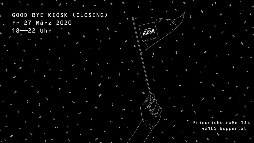 Doch kein Grund zur Traurigkeit, denn das Kollektiv WE ARE KIOSK bleibt bestehen und wird weiterhin in Kooperation mit anderen Akteuren, Kreativen und Künstlern in und um Wuppertal zusammenarbeiten und zukünftig Veranstaltungen in anderen Lokalitäten umsetzen.Am Freitag, dem 27.03.2020, feiern wir ein letztes Mal im Kiosk: