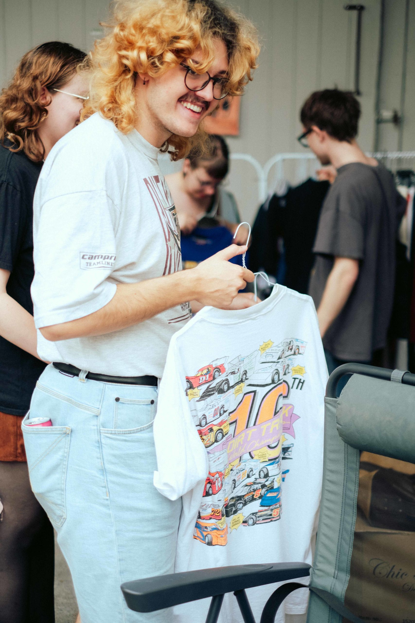 Der vergangene Sonntag war all dies und noch viel mehr: Ein Sammelsurium von Eindrücken, die uns sonst selten so lebendig offenbart werden. Denn wie bereits im letzten Jahr nutzte der Flohmarkt nicht einfach einen öffentlichen Platz als Austragungsort, sondern lud die Bewohner*innen des Viertels dazu ein, ihre privaten Hinterhöfe, Flure und Gärten als Begegnungsräume zu öffnen. Dieses Erfolgsrezept, das Florian Fuchs sich 2023 von Karo, Katha und Cathy aus dem Brill entlieh und gemeinsam mit dem Kommunikationsdesigner Jacob Economou sowie weiteren Beteiligten im Mirker Quartier umsetzte, funktionierte auch in diesem Jahr. Innerhalb weniger Wochen meldeten sich über 70 Orte, an denen Anwohner*innen ihre Verkaufsstände eröffneten – 30 mehr als im Vorjahr. Der Flohmarkt zog erneut in das Viertel ein und verlagerte die sozialen Interaktionen in die Vielfalt privater Räume. Das reduzierte nicht nur den Organisationsaufwand, sondern belebt vor allem ein Phänomen, das heute oft nur noch als Hülle seiner selbst existiert – Nachbarschaft.