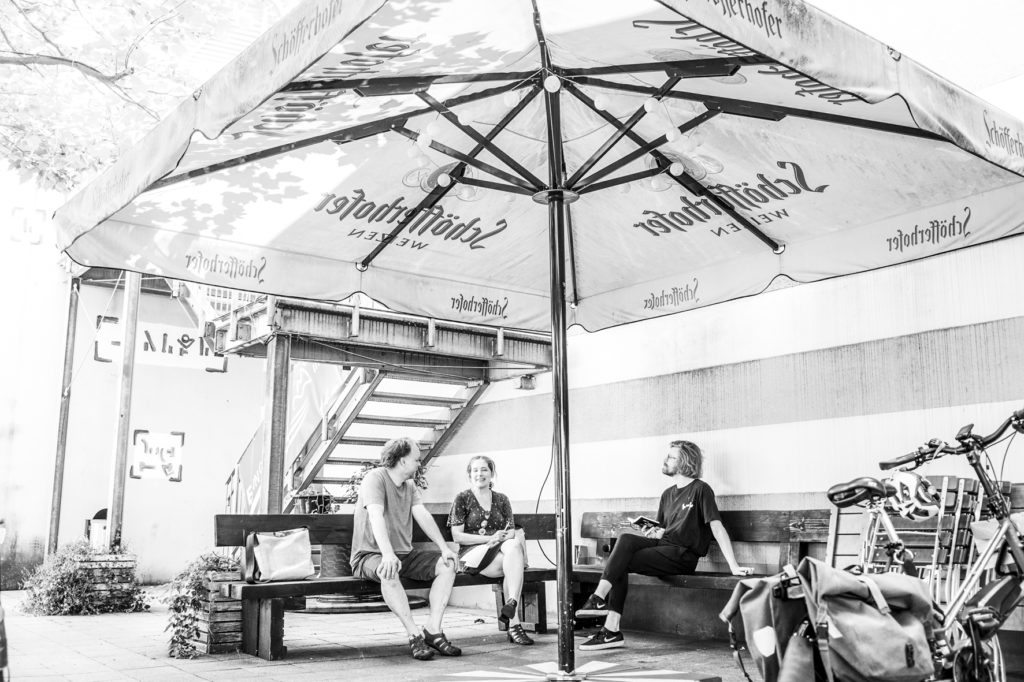 Dr. Uta Atzpodien ist freie Dramaturgin, Kuratorin und Autorin. Mit ihrem facettenreichen Wirken ist sie vielseitig in der Stadtentwicklung Wuppertals engagiert und beschäftigt sich explizit mit den Möglichkeiten der Kunst und Kultur im Hinblick auf gesellschaftliche Transformationsprozesse. Sie ist Gründungsmitglied des )) freien netz werk )) KULTUR und Vorstandsmitglied des INSEL e. V.. Zara Gayk ist bildende Künstlerin, zweite Vorsitzende vom INSEL e. V. und des )) freies netz werk )) KULTUR. Michael Felstau ist für die grüne Stadt unterwegs. So ist es nicht verwunderlich, dass er in unterschiedlichen Vereinen und Initiativen aktiv ist, die sich alle mit der Begrünung der Stadt beschäftigen: wie z. B. im Förderverein Historische Parkanlagen Wuppertal e. V.“ und der „IG Wuppertals Urbane Gärten“. Im Kern seines Wirkens steht dabei, dass individuelle Recht auf Stadt wahrzunehmen, den öffentlichen Raum zu nutzen, diesen gemeinschaftlich grüner zu gestalten und entstehende Projekte zu vernetzen – ganz nach dem Motto des Urban Gardening Manifests „Die Stadt ist unser Garten“!