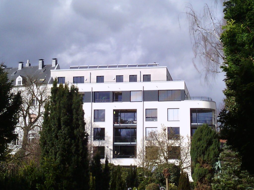 Und jetzt kann auch von außen gelesen werden, dass das Haus in der Malerstraße 20 eine Klimaschutzsiedlung ist. Gegenüber einem herkömmlich isolierten Haus spart die Hausgemeinschaft jährlich ca. 30 t CO2 ein.