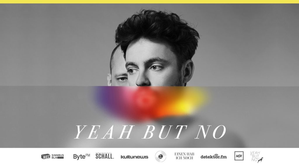 Yeah But No sind Das aus Berlin besteht sind Douglas Greed und Fabian Kuss. Elektronische Musik mit klassischen Songstrukturen zu einem klugen und mitreißenden Hörgenuss verschmelzen, ist schon immer das Anliegen der beiden. Sie veröffentlichen das selbstbetitelte Debütalbum im Herbst 2017, gefolgt von ausgedehnten Touren und begleitet von einigen sorgfältig kuratierten Remix-EPs mit Beiträgen von Freunden, die sie auf dem Weg machen, und von Künstler_innen, deren Fans sie sind. Daniel Brandt, Karmon, Marc Holstege und viele andere tragen tolle Interpretationen der Musik von Yeah But No bei und erweiterten das breite Spektrum der Band von elegantem Deep House über friemelige Electronica bis hin zu hypnotischem Techno und großartiger Popmusik.
