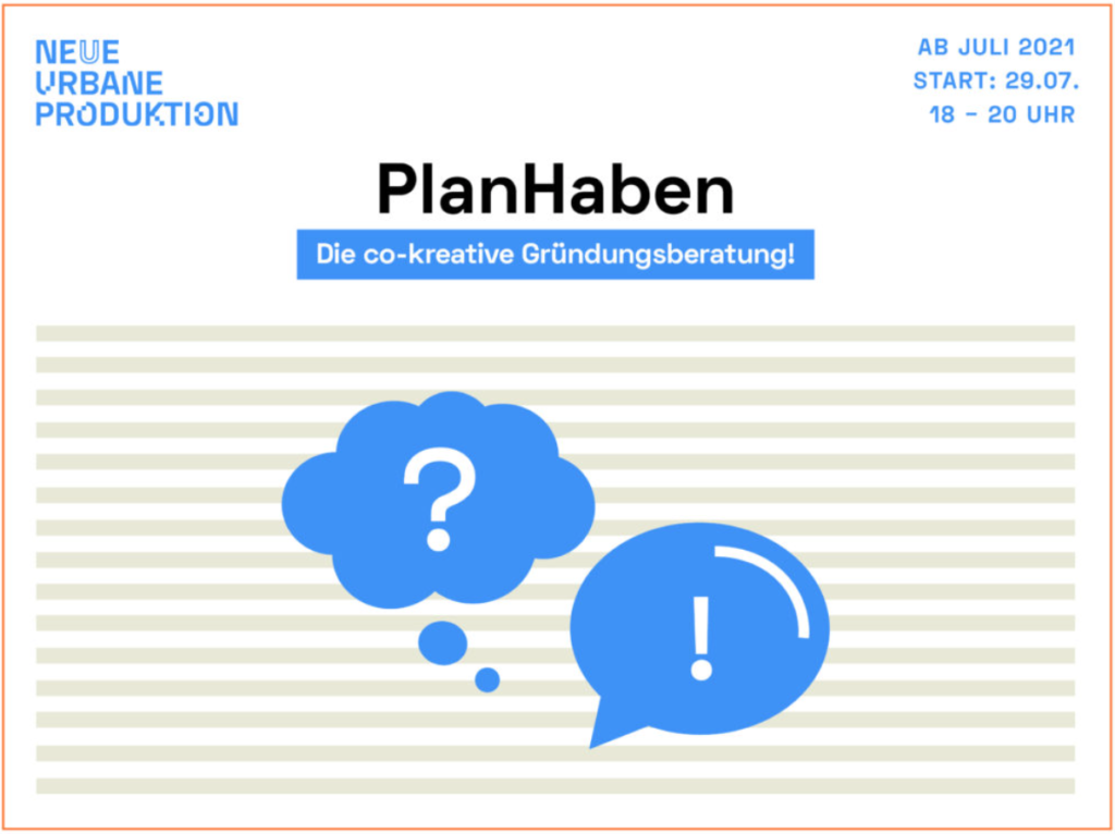 Das Projekt »Neue Urbane Produktion« lädt Euch zu regelmäßigen offenen PlanHaben-Sessions ein. Ihr bringt die Themen mit, die Euch aktuell beschäftigen. Gemeinsam mit den anderen Teilnehmenden suchen wir nach kreativen Lösungen. Ihr hört zu, steuert das Gespräch und nehmt die Antworten mit, die zu Euch passen. Der Prozess wird von uns professionell moderiert und so gestaltet, dass alle etwas greifbares mit nach Hause nehmen.
