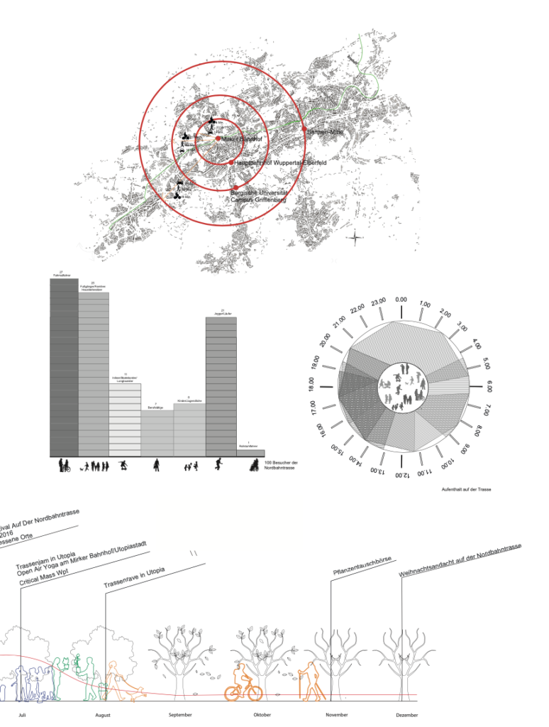 Zusammenfassung: Die Nordbahntrasse – ein Ort der vielfältigen Freizeitgestaltung und gleichzeitig auch durch eine schnelle Infrastruktur gekennzeichnet: Viele Ziele können über die Trasse zu Fuß oder mit dem Fahrrad oft leichter und schneller erreicht werden als mit dem Auto. Innerhalb des Mirker Quartiers könnte das sogar noch besser funktionieren: Man könnte die Achse, an der Diakoniekirche vorbei bis hin zum Bahnhof, als autofreie Fahrrad-Strecke miteinbeziehen. Auch die Zugänge zur Trasse sind für viele Nutzer nicht ausreichend. Die Trasse als Gehweg an sich sowie Veranstaltungen könnten besser erreichbar sein, was zu einer stärkeren Beeinflussung des Mirker Quartiers führen könnte.