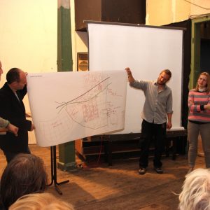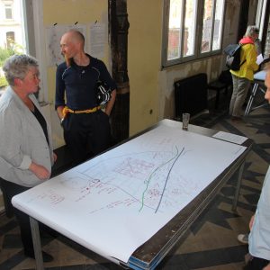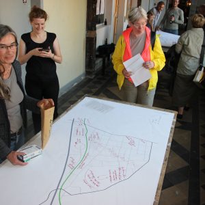 An drei Tischen wurden die Vorschläge und Ideen in Pläne eingezeichnet.