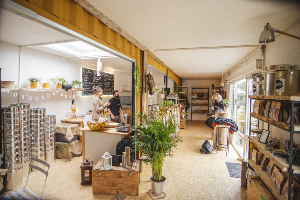 Sebastian hatte schon immer Freude an Kaffee. Doch als er vor drei Jahren den Vizemeister im Kaffeerösten (ja es gibt tatsächlich eine Meisterschaft im Kaffeerösten!) kennenlernte, entfachte das eine Leidenschaft in ihm. Gemeinsam mit Yvonne entschlossen sie sich dazu ihre neu entfachte Leidenschaft in eine Geschäftsidee umzuwandeln. Nach langwieriger Suche und Abwägung des Standorts fiel die Wahl, statt auf ein Ladengeschäft in der Wuppertaler Innenstadt, auf den Standort »Utopiastadt« an der Nordbahntrasse. Laut eigener Aussage von Yvonne und Sebastian war diese Entscheidung reine Herzensangelegenheit, denn das Konzept der »Talbohne« könnte an keinen anderen Ort besser passen. Nach der Klärung der Bedingungen und der Möglichkeiten erwerben sie zwei 40ft Container die fortan Teil der Utopiastadt Campus Raumstation (USCRS) werden. In drei Monaten der aufwändigen Eigenarbeit bauen sie diese selbst aus und um und schaffen damit den Standort »Talbohne«. Yvonne betont, dass sie sich seit jeher gut aufgehoben fühlen und die tolle Nachbarschaft und der besondere Zusammenhalt ihr sehr gefällt.