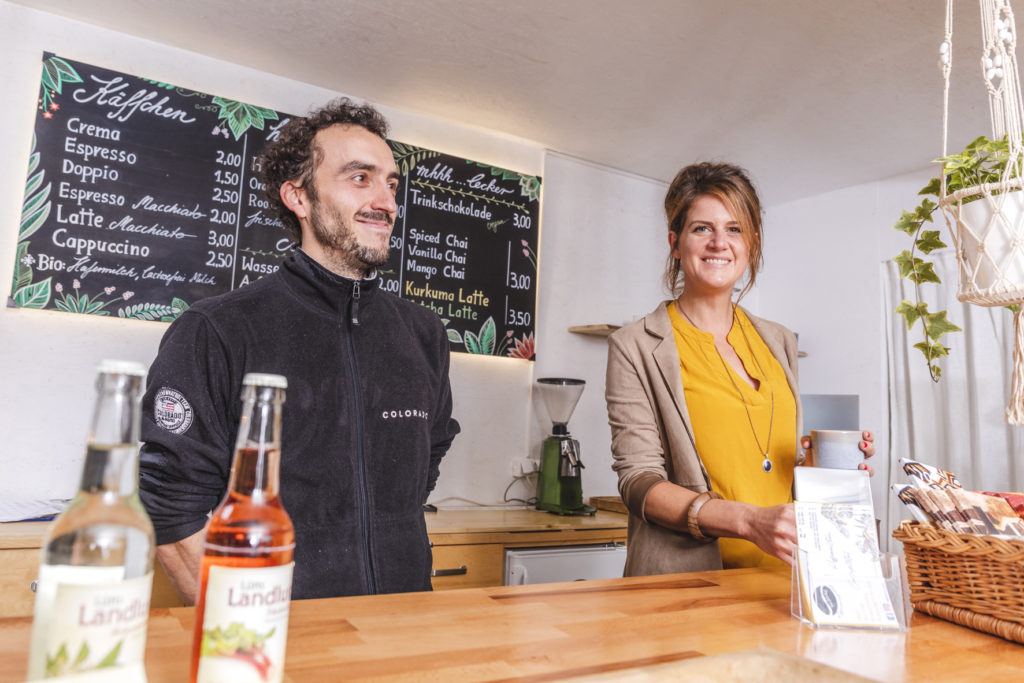 Neben den eigens produzierten Produkten aus Kaffeebohnen und deren Verpackung bietet »Talbohne« außerdem Raum für die Produkte weiterer nachhaltiger Wuppertaler Labels. Außerhalb der Öffnungszeiten des Hutmachers bereitet Yvonne die selbst produzierten Bohnen auch in Kaffeespezialitäten zu. Während der Öffnung des Hutmacher können Kund*innen die Kaffeevariationen der Talbohne direkt in der ehemaligen Bahnhofsschalterhalle genießen. Das Ganze stellt keine Konkurrenz dar, sondern vielmehr eine Kooperation, die es dem*der Endkund*in ermöglicht auch außerhalb der Öffnungszeiten des Hutmachers in den Genuss guten Kaffees auf der Nordbahntrasse zu gelangen. Sprich auf deinem Weg zur Arbeit kannst du nun ganz unkompliziert leckeren, fair-produzierten und nachhaltigen Kaffee genießen – das schmeckt!