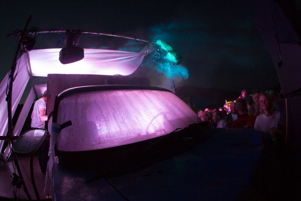 Trotz des ziemlich mittelmäßigen Wetters und über den Tag verteilte Regenschauern, ließen sich die UtopistInnen nicht unterkriegen. Sie organisierten noch am Vortag den Aufbau von 25 Zelten, die rund 300qm Outdoortanzfläche überdachten und den Rave somit nicht ins Wasser fallen ließen. Trotz des Wetters wurde ausgelassen getanzt, Leckereien aus dem Quartier geschlemmt, das Hausbier des Hutmachers genossen und gefeiert.