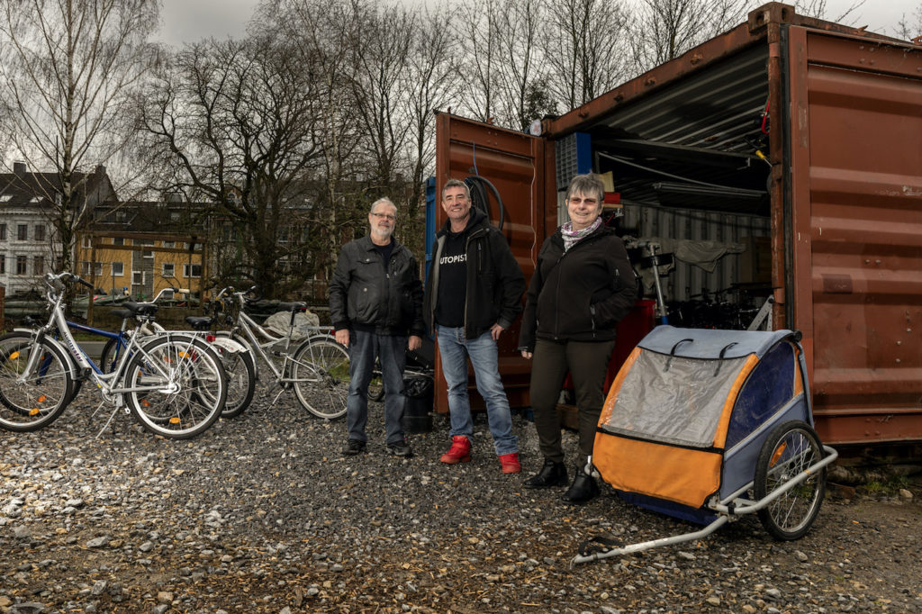 Deswegen trafen wir uns mit drei der Verleiher*innen – Ralf Wittmer, Hildegard Gallenkamp und Peter Theuerkauf vor den Verleihcontainern auf der Utopiastadt Campus Raumstation. Ralf engagierte sich bereits seit 20 Jahren ehrenamtlich bei der Kirche bevor er vor drei Jahren bei »Utopiastadtrad« landete. Angetrieben von seiner Leidenschaft für Fahrräder findet er hier ein soziales Netzwerk von Gleichgesinnten, die gemeinsam an einem Strang ziehen. Auf der Suche nach einer Tätigkeit die ihnen nicht nur Spaß bereitet, sondern auch etwas an die Mitmenschen zurückgibt, führt auch der Weg von Hildegard und Peter sie zu den beiden Überseecontainern von »Utopiastadtrad«. Seitdem stehen sie in der Saison wöchentlich bereit um Wuppertaler*innen das Fahrrad fahren zu ermöglichen.