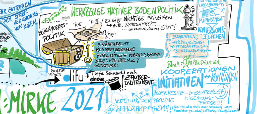 Letztendlich bleibt zu vermerken, dass bodenpolitische Entscheidungen immer auf strukturellen Gegebenheiten fußen und diese somit bedingen. Nur weil die Werkzeuge dafür nicht explizit angewandt werden, beeinflussen sie somit trotz alledem den Prozess. Pätzold hält fest, dass nicht alle erfolgreichen Projekte lediglich Glück haben, sondern vielmehr strukturelle Prozesse und Wohlwollen aus vorangegangenen Prozessen über Erfolg entscheiden. Gleichzeitig reichen Kommunen jedoch keine Leuchtturmimpulse aus anderen Städten – sie müssen oftmals selbst Erfahrungen machen, bevor sie Vertrauen in bürgerschaftlichen Projekte fließen lassen. Paradoxerweise begegnen Kommunen den Investor*innen, die mit ihren Vorhaben auch scheitern können, mit mehr Vertrauen. Das zeigt erneut, wie sehr Boden und dessen Möglichkeiten in eine Marktlogik eingebunden ist, die ihn als verwertbares Gut wahrnehmen und nicht als gemeinwohlorientierte Verpflichtung. Zumpe betont außerdem abschließend noch einmal, wie wichtig die wohlwollende Verbindung zur Kommune bleibt. Schlussendlich müsse man den Kommunen klarmachen, dass ein Scheitern gemeinwohlorientierter Projekte, an von der Stadt konstruierten Hürden, auch immer rückwirkend auf die Kommune reflektiert. Am Ende kommt es darauf an, ausdauernd am Ball zu bleiben und gemeinsam den Kipppunkt der Kommune zu erreichen.